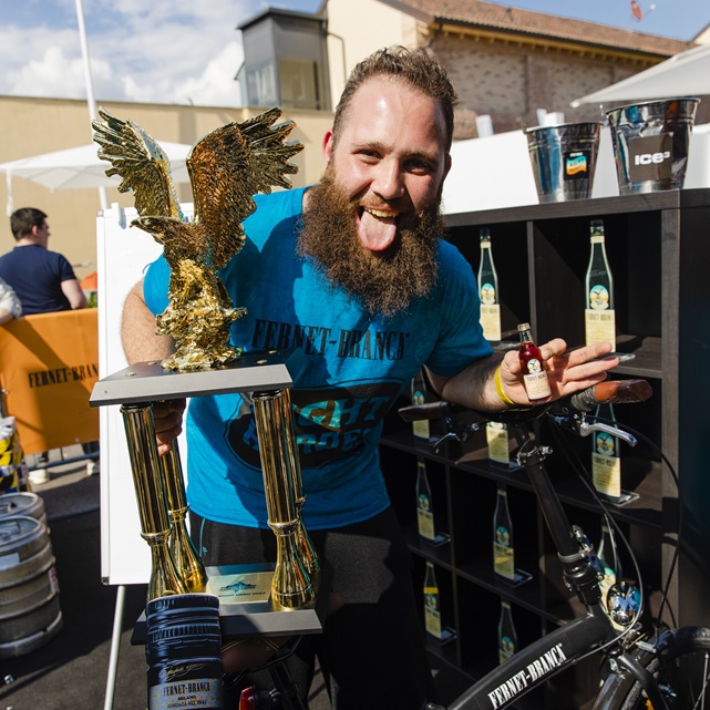 ABILITÀ: una prova amatissima. Qui i barback, travestiti da bottiglia di Fernet-Branca, dovranno riempire un vassoio di 10 cocktails preparati dal suo fedele bartender e trasportarlo dall’altra parte dello stand. E per rendere il tutto ancora più divertente e competitivo, dovranno attraversare il percorso tra i copertoni e la pioggia di palline colorate lanciate dal pubblico senza perdere neanche un cocktail!
