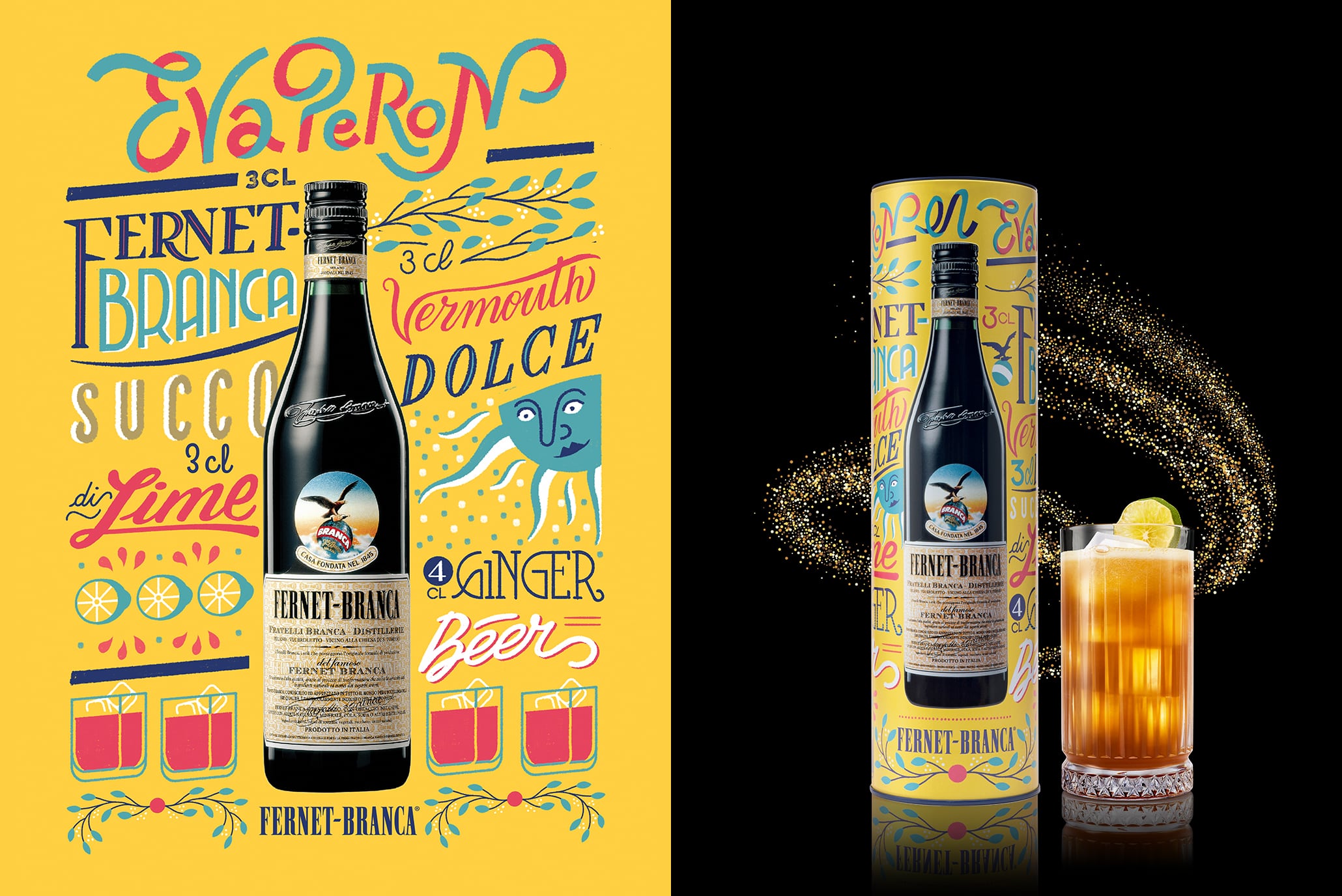 BrancaMilano, Branchinotto, Eva Peron e Fernet Cup N°1 prendono vita grazie alle quattro bellissime illustrazioni dal sapore vintage stampate sulle latte in quattro colori. All’interno di ciascuna confezione i leaflet con la ricettazione completa, rendono questa edizione limitata ancora più speciale per i collezionisti e gli amanti di Fernet-Branca. Ancora una volta l’incontro tra la modernità del design e la tradizione di Fernet-Branca c’è la filosofia delle Distillerie Branca, “Novare serbando” dando vita ad un’edizione limitata davvero unica da regalare.